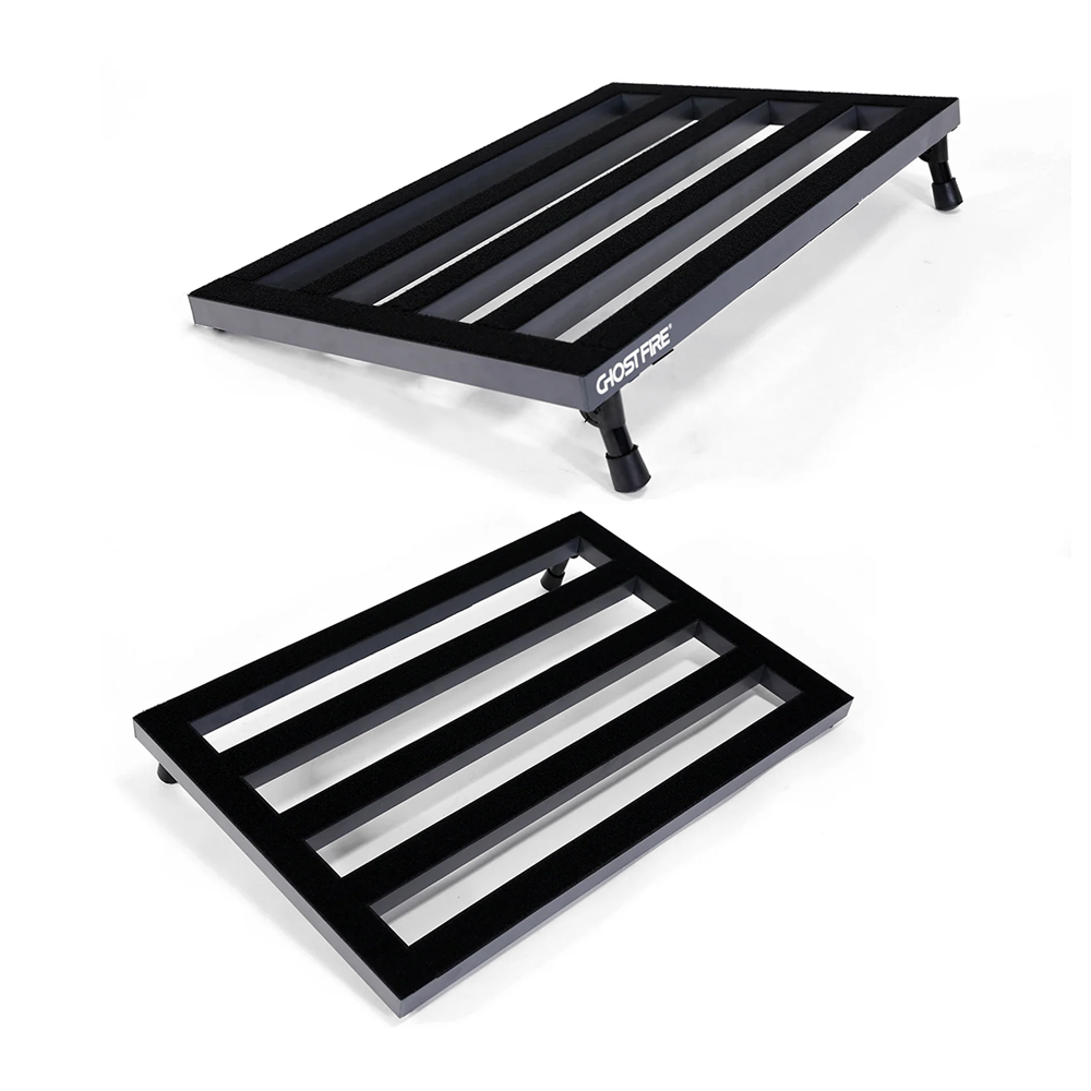 Ghost Fire Sシリーズペダルボードは、ライブステージでの使用を念頭に設計されたペダルボードです。超軽量かつ耐久性に優れたアルミ合金を使用し、ボード表面には面ファスナー(ループ)が貼り付けられています。付属の面ファスナー(フック)をエフェクターに取り付ければ、すぐにボードに設置することができます。