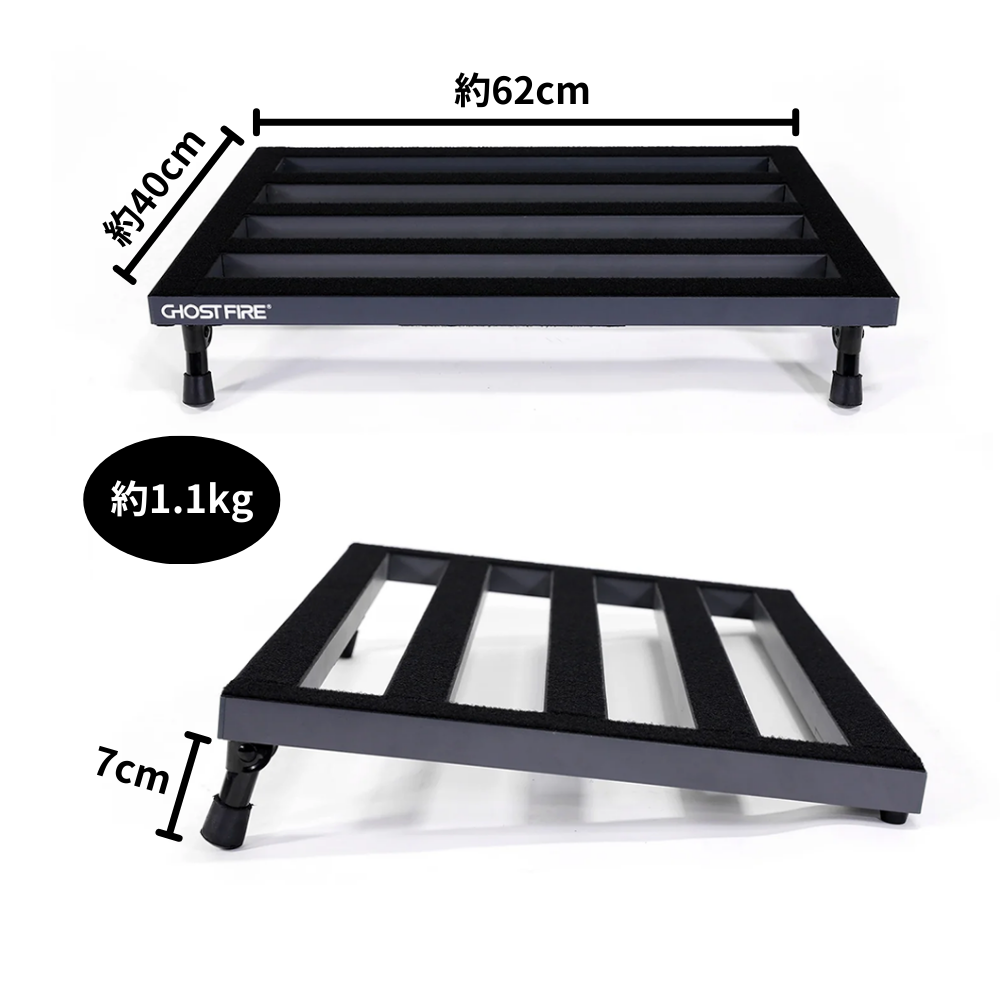 ボードサイズは 約62×40cm / 1.1kg と軽量で、10~18個程度のエフェクターを設置することができます。