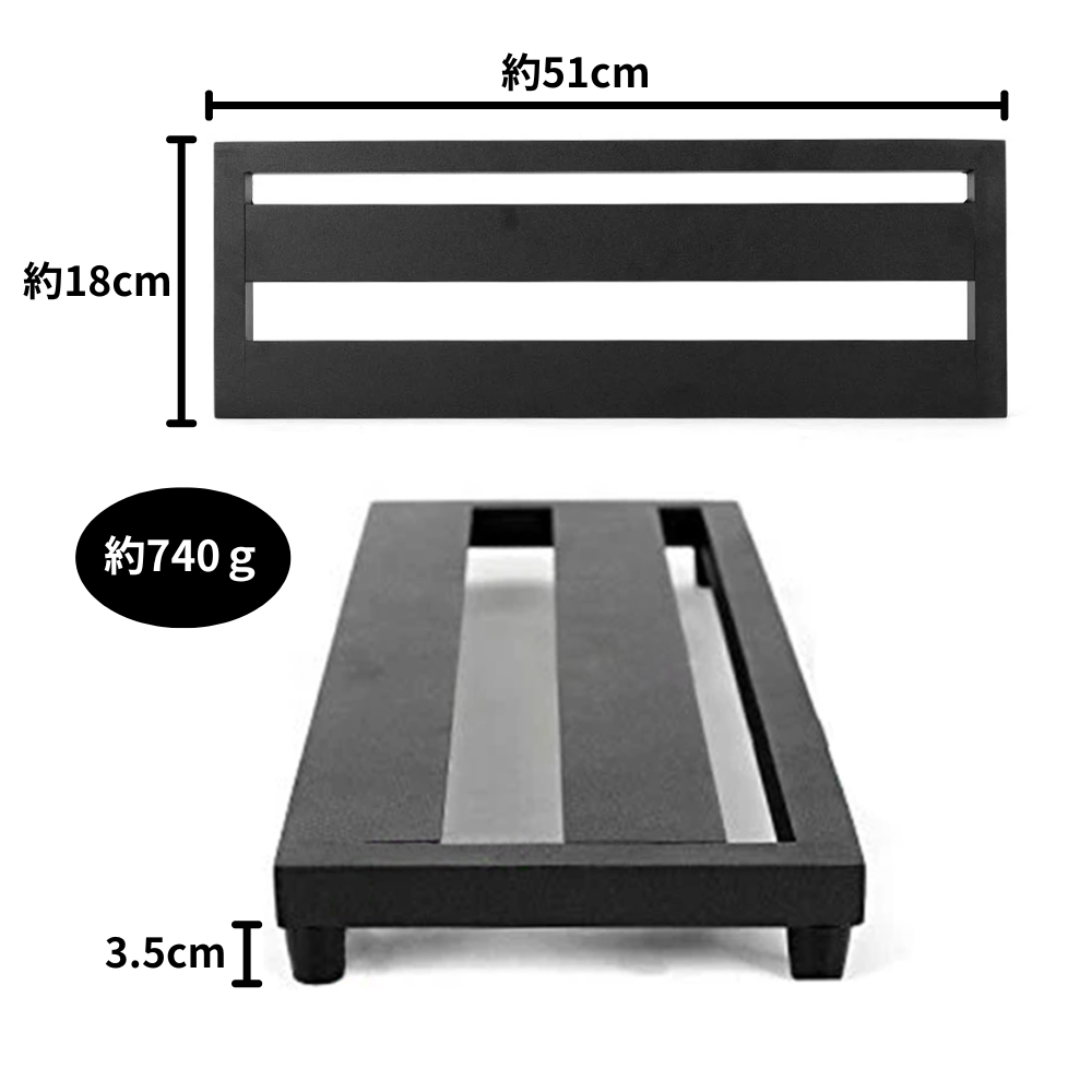 ボードサイズは 約51×18cm・740g と軽量で、4~6個程度のエフェクターを設置することができます。