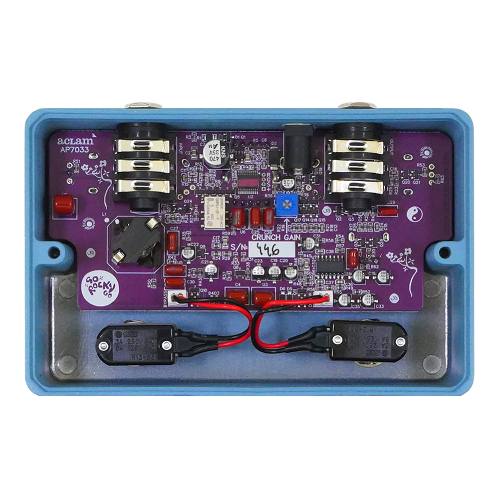 Aclam Guitars Go Rocky Goは、シリアル2004のVox Conquerorプリアンプのブリリアントチャンネルを再現したペダルです。オリジナルのM.R.B(ミッドレンジブースト)と内蔵ディストーションエフェクトを再現するとともに、様々なアンプに接続してシームレスに使用できるよう改良しています。