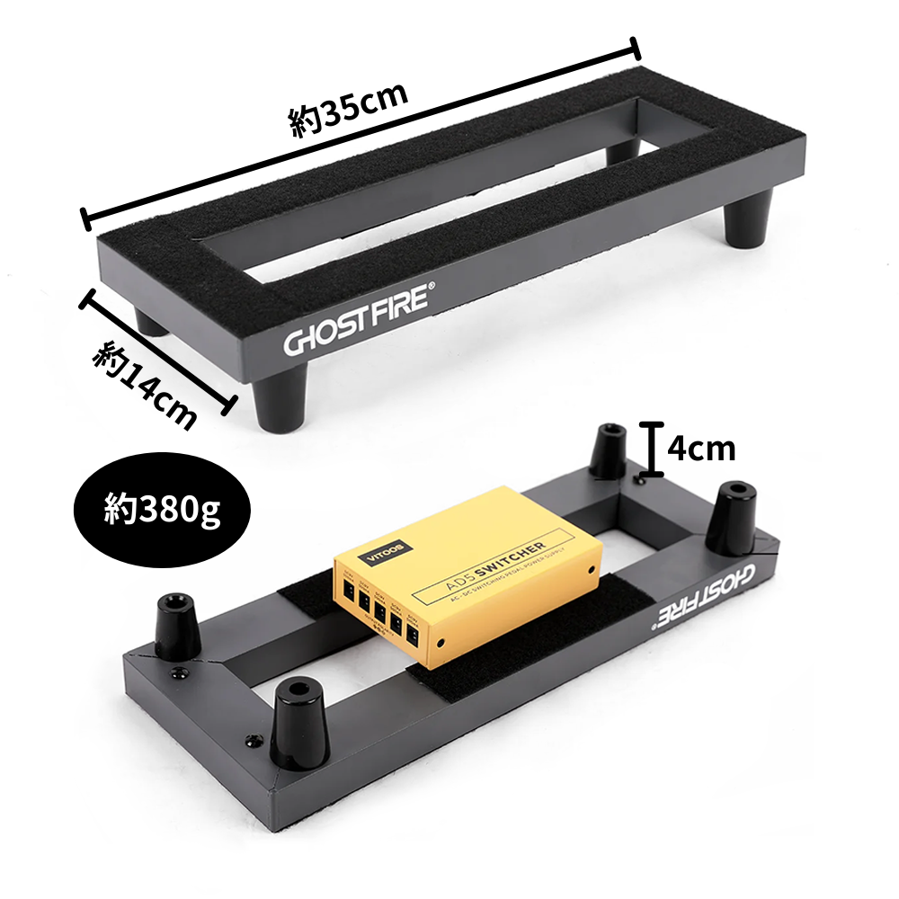 ボードサイズは 約35×14cm / 380g と軽量で、3~4個程度のエフェクターを設置することができます。
