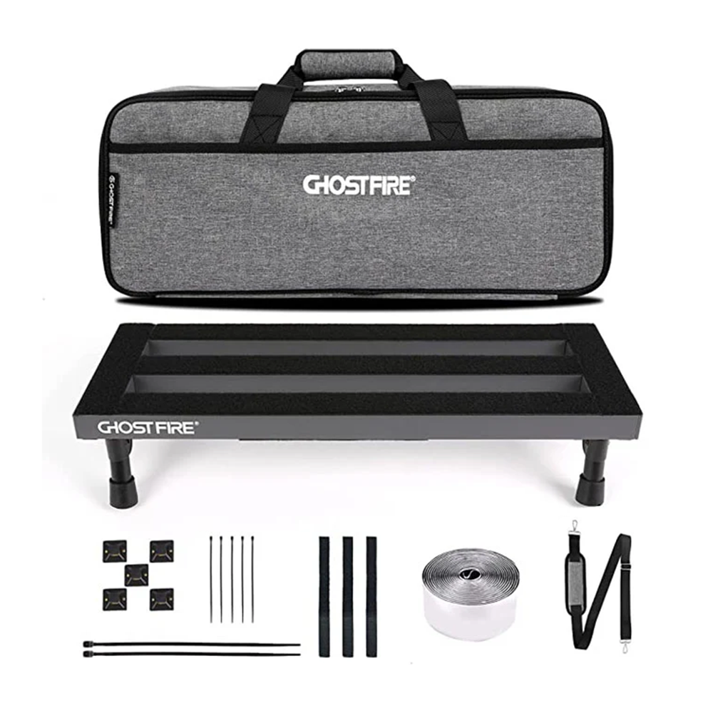 Ghost Fire Sシリーズペダルボードは、ライブステージでの使用を念頭に設計されたペダルボードです。超軽量かつ耐久性に優れたアルミ合金を使用し、ボード表面には面ファスナー(ループ)が貼り付けられています。付属の面ファスナー(フック)をエフェクターに取り付ければ、すぐにボードに設置することができます。
