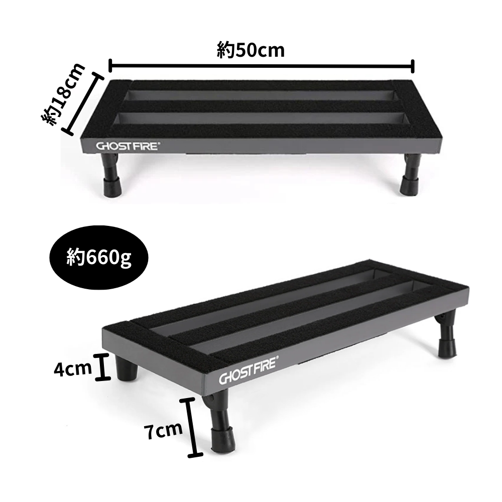 ボードサイズは 約50×18cm / 660g と軽量で、5~8個程度のエフェクターを設置することができます。