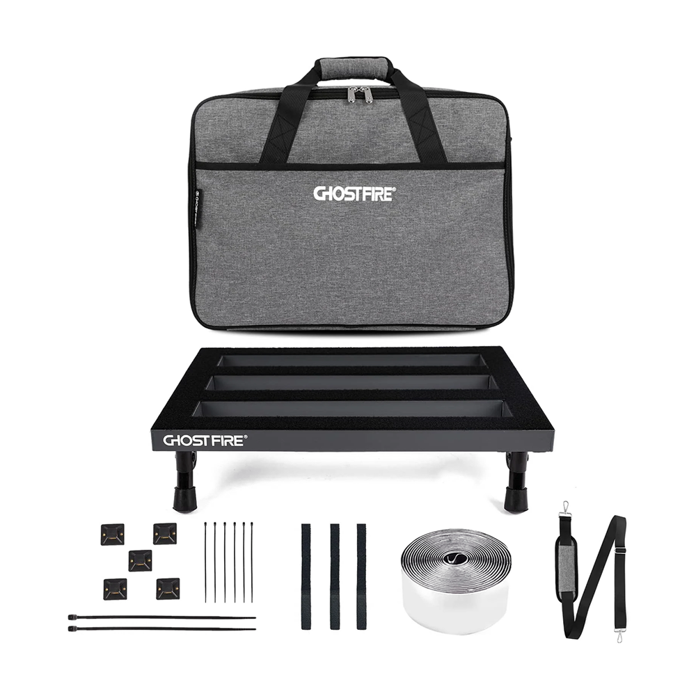 Ghost Fire Sシリーズペダルボードは、ライブステージでの使用を念頭に設計されたペダルボードです。超軽量かつ耐久性に優れたアルミ合金を使用し、ボード表面には面ファスナー(ループ)が貼り付けられています。付属の面ファスナー(フック)をエフェクターに取り付ければ、すぐにボードに設置することができます。