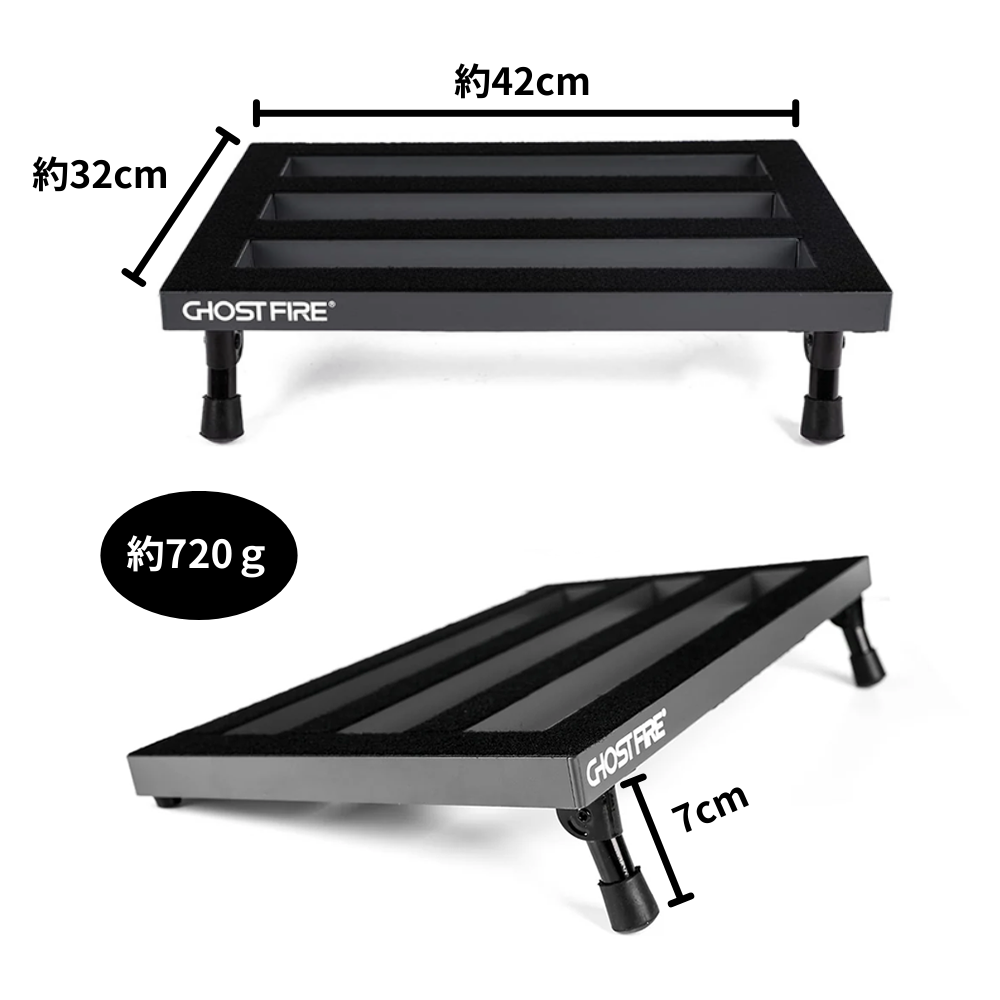 ボードサイズは 約42×32cm / 720g と軽量で、6~8個程度のエフェクターを設置することができます。