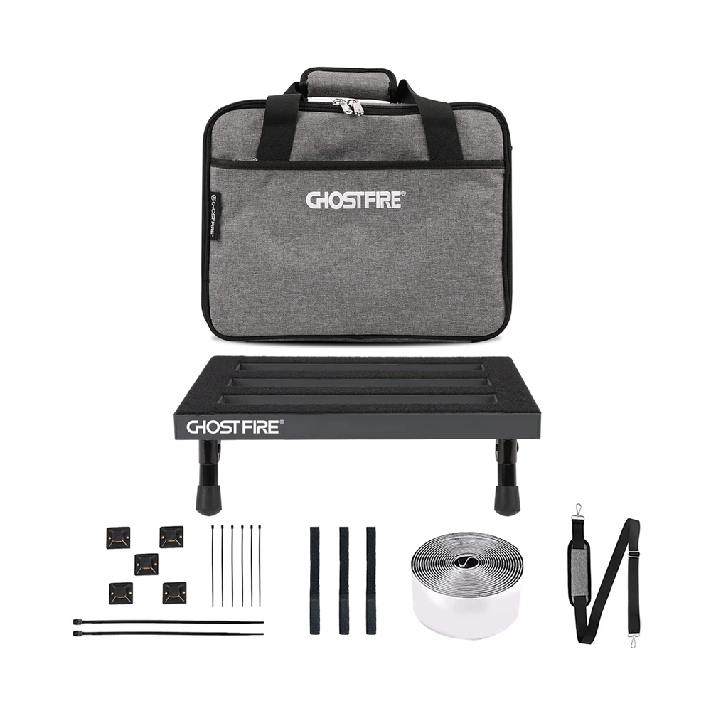 Ghost Fire Sシリーズペダルボードは、ライブステージでの使用を念頭に設計されたペダルボードです。超軽量かつ耐久性に優れたアルミ合金を使用し、ボード表面には面ファスナー(ループ)が貼り付けられています。付属の面ファスナー(フック)をエフェクターに取り付ければ、すぐにボードに設置することができます。