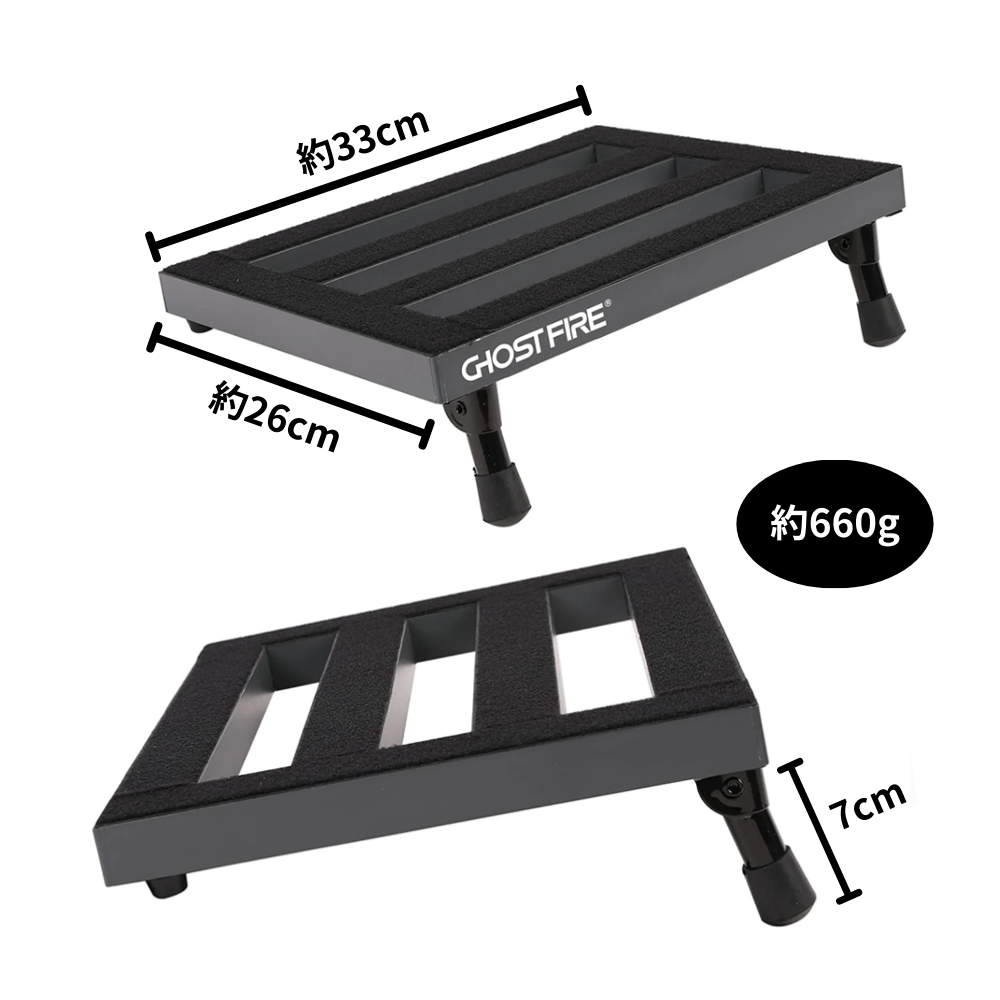 ボードサイズは 約33×26cm / 660g と軽量で、6~8個程度のエフェクターを設置することができます。