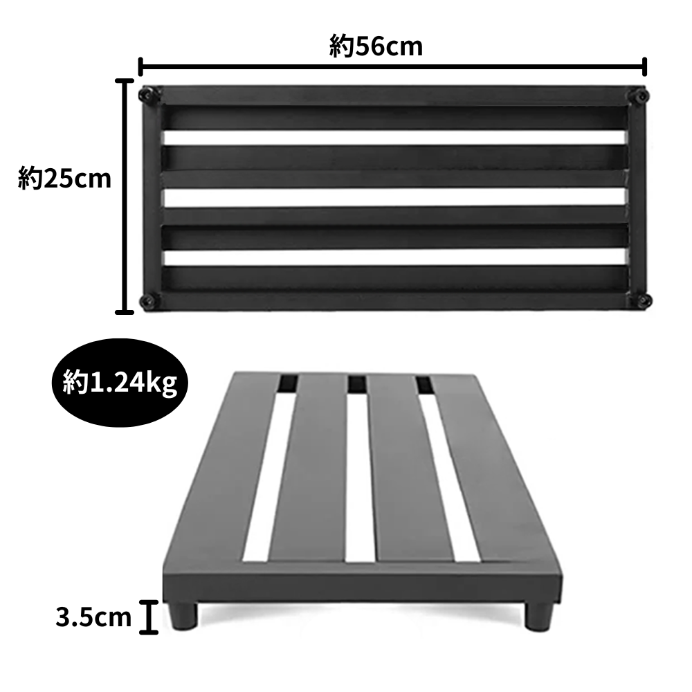 ボードサイズは 約56×25cm・1.24kg と軽量で、6~10個程度のエフェクターや大柄なマルチエフェクターを設置することができます。