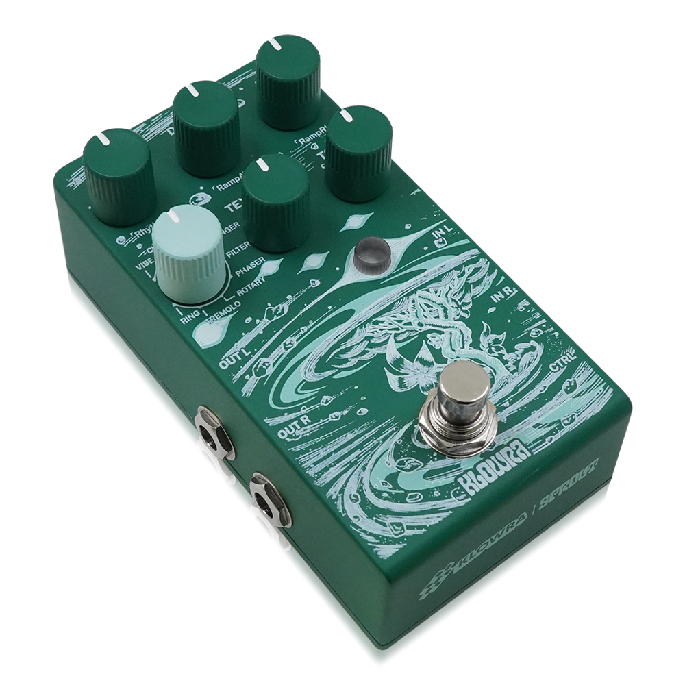 Sprout Modulationは、クラシックなアナログトーンからリアルな物理モデリング、先進的なテクスチャまで、9種類のエフェクトを収録したステレオモジュレーションペダルです。高品質なアルゴリズムと扱いやすいパラメータを持ち、創造的なサウンドの探求に最適です。