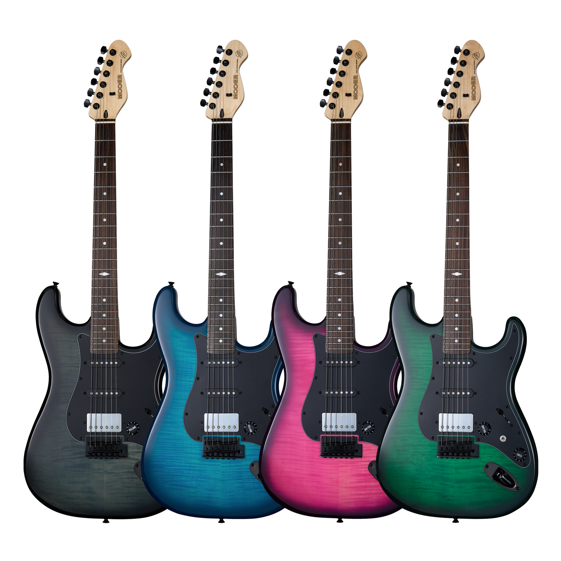 ・フレイムメイプルトップのポプラボディ、SSH配列のピックアップ(ハムバッカーはスプリットコイル可能)
